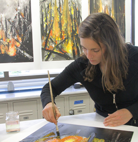 Artwork in both exhibits is meant to include ecological and management aspects of fire in Alaska. The nine professional artists enjoyed exposure to the broad spectrum of fire management during four field trips organized by AFSC and LTER. A fire simulation event, an ecological tour of Denali National Park and other interaction with scientists and managers served as sources of information and inspiration for the artists.