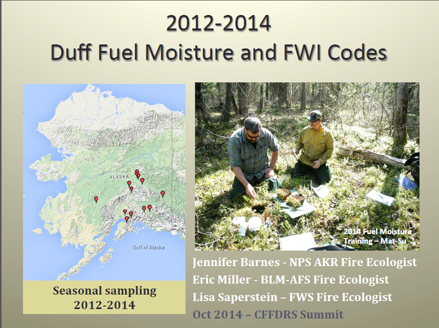 This presentation and MANY MORE available on fuel moisture sampling, remote sensing validation of FWI, new remote sensing tools for fire detection and growth modeling, using dataloggers on soil moisture probes to track fuel moisture changes, and the seasonality of CFFDRS, to name a few.
