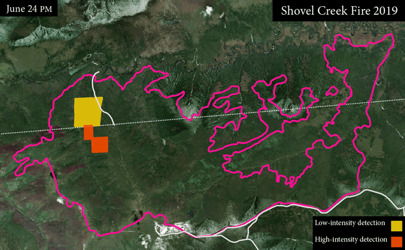 for the 2019 Shovel Creek Fire near Fairbanks. Some satellite flyovers produce no usable